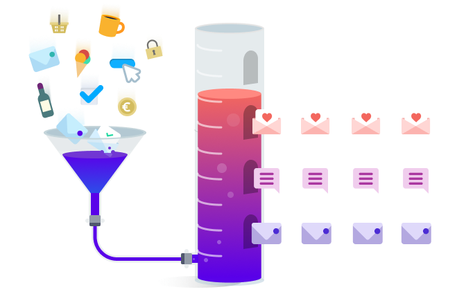 Vous pouvez assigner à vos scores des actions à déclenchement automatique. Vos contacts, par leurs données socio-démographiques (informations) ou comportementales (actions), ont un score évolutif. A chaque étape du cycle client (onboarding, nurturing, premier achat, réachat, satisfaction client ou encore relance des inactifs) vous pourrez déclencher automatiquement des envois. Ainsi, vous déclencherez toujours au bon moment et pourrez automatiser le cycle client à toutes ses étapes.